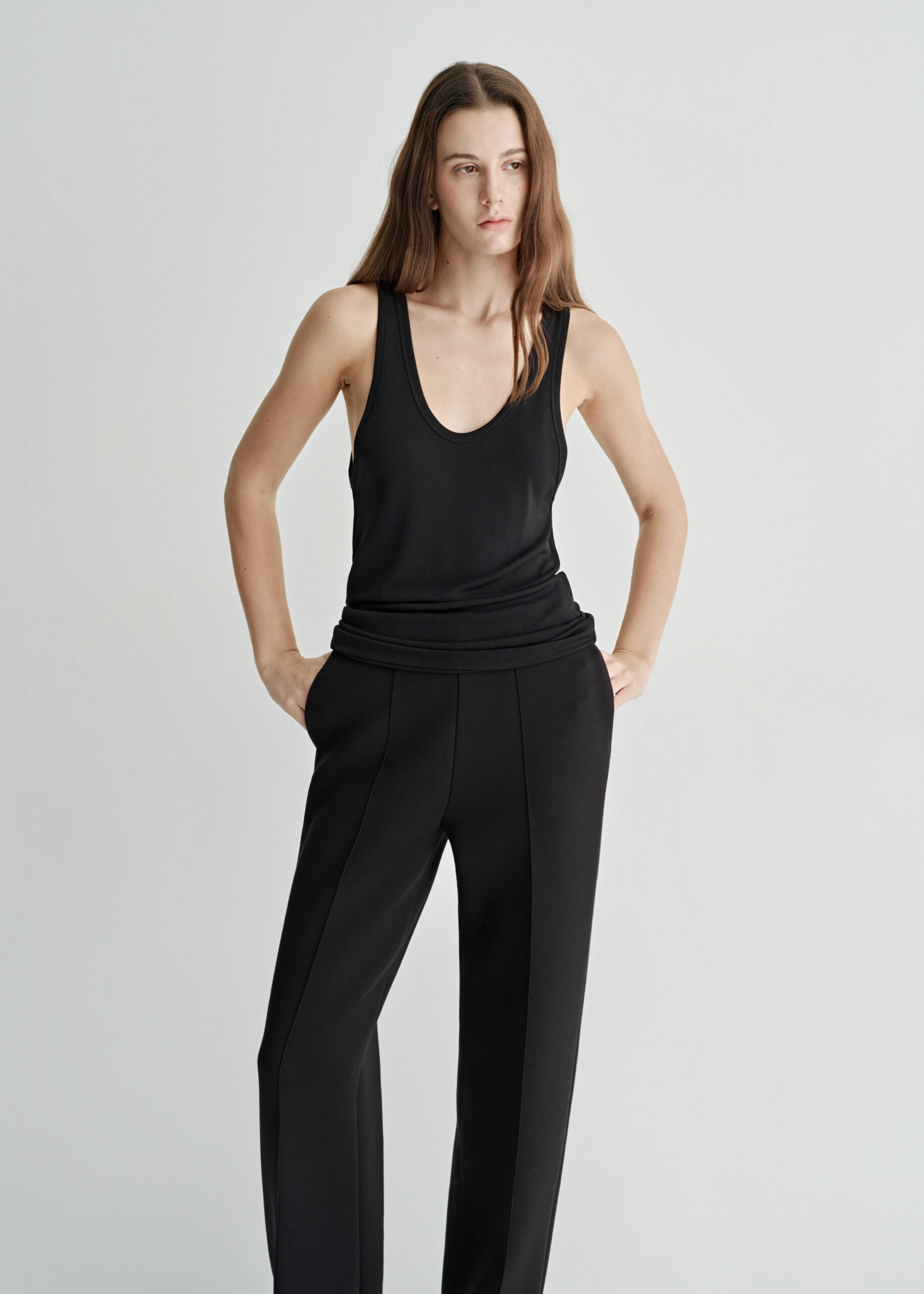 Minimalist tank top crafted from soft jersey, softly contouring the body with ease.