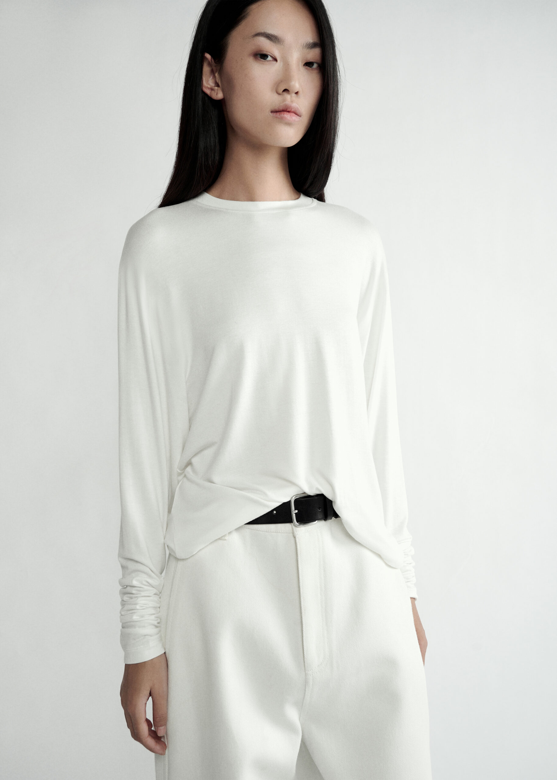 Classic crew-neck tee with long sleeves, embodying both comfort and minimalist elegance. Crafted from cotton for a naturally soft and lightweight feel. A timeless wardrobe foundation, effortless to style for any occasion.