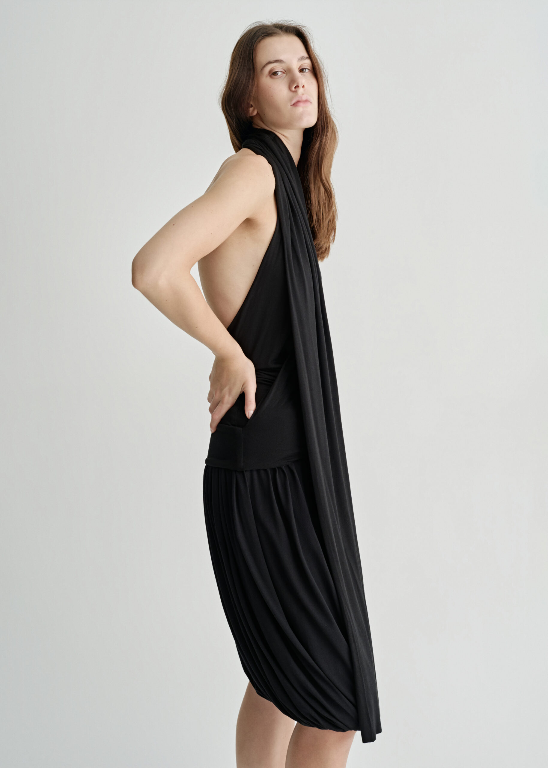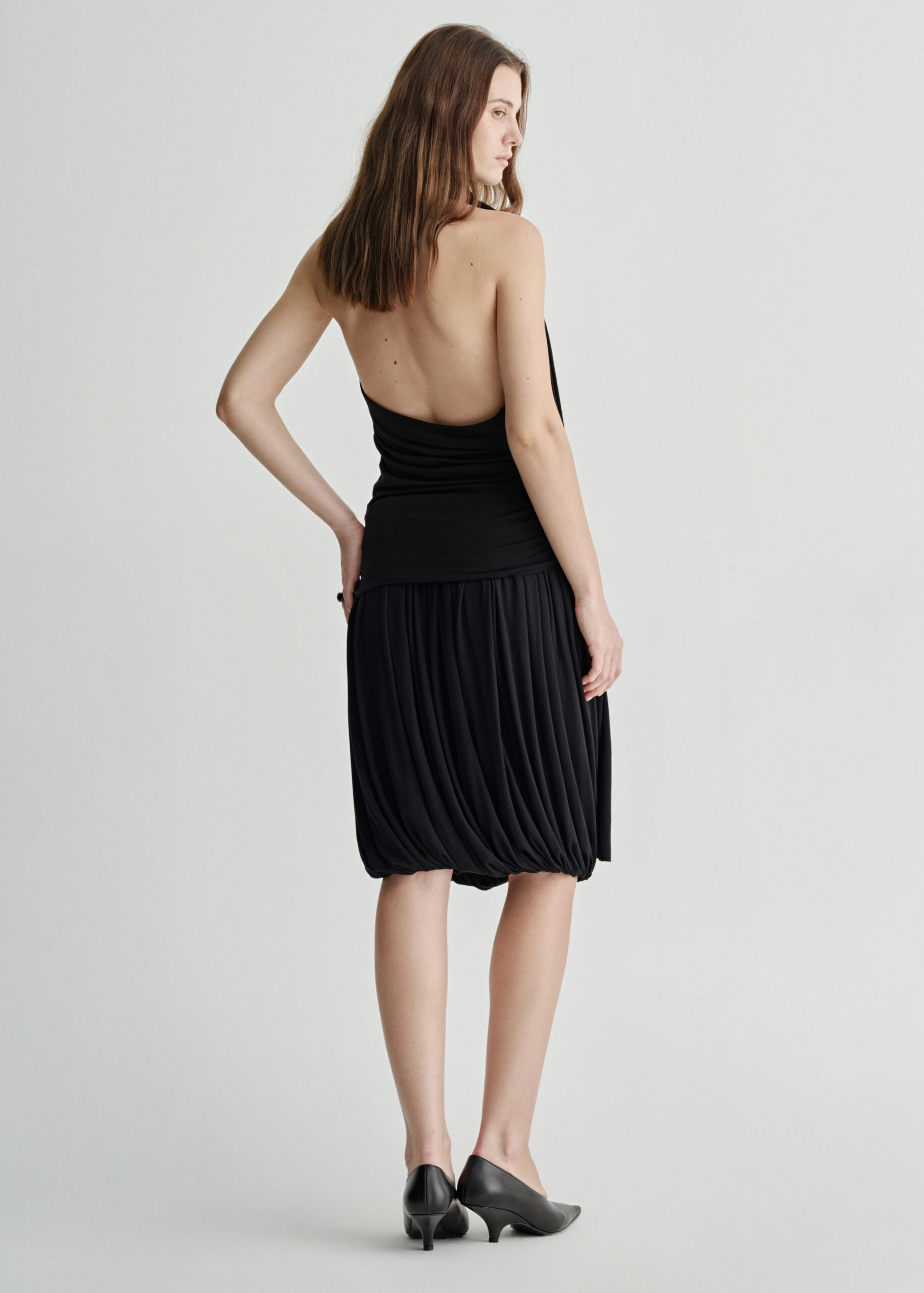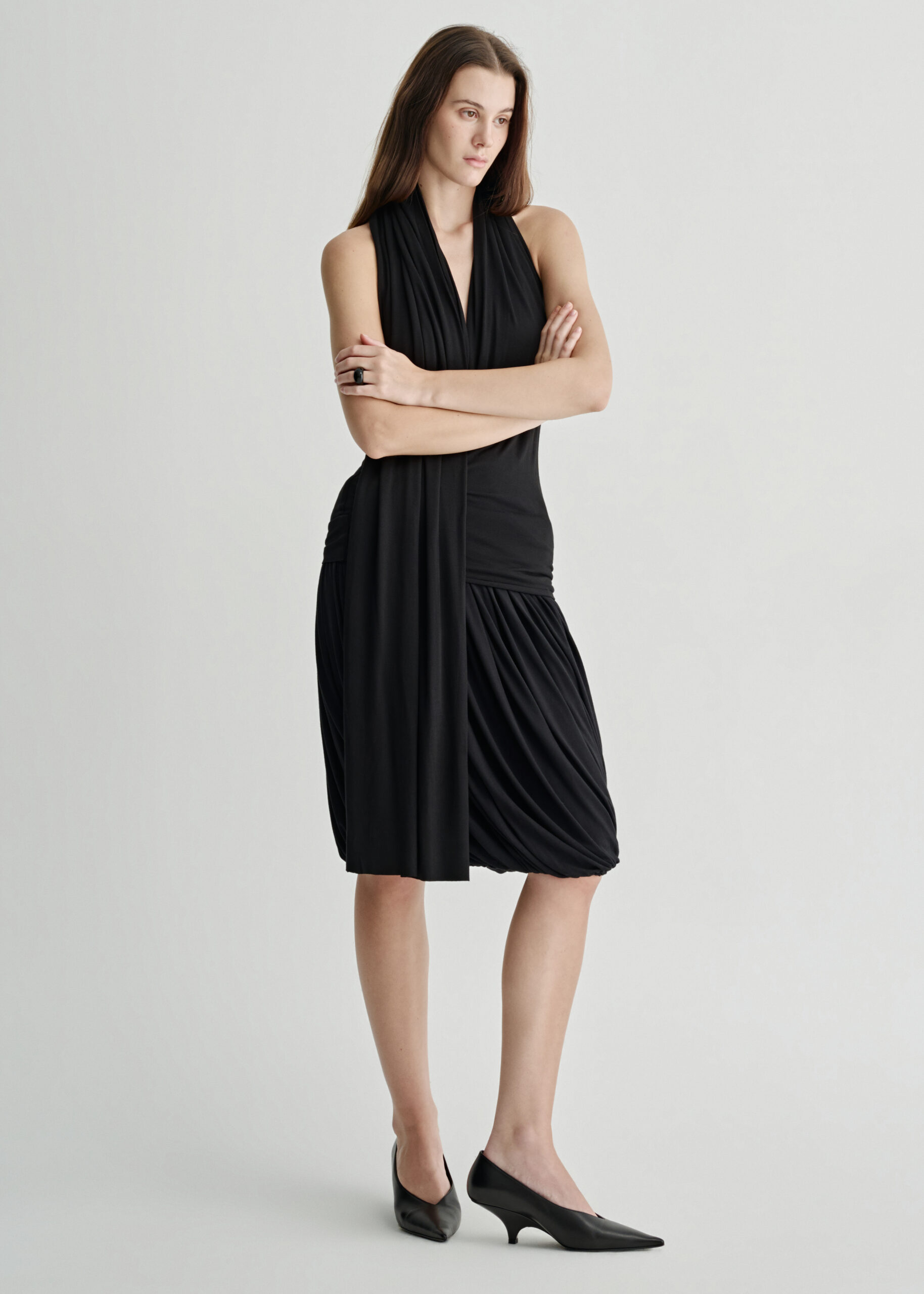 Crafted from a lightly stretchy knit, it contours the natural lines while maintaining a balanced structure and fluid drape.